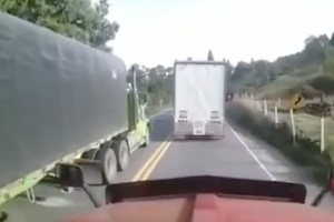これ撮影車が加速して邪魔したのかと思ったけど、どっちかというと前が遅くて詰まった感じですね。コロンビアのブカラマンガ〜パンプロナ間の66号線で撮影された、無理な追い越しをしようとした大型トレーラーがお馬鹿な事故を起こしてしまうドラレコ動画です。こんなクネクネした道でよーやるわwww