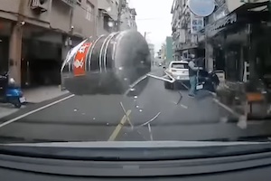 これ建物の屋上に設置する給水設備のタンクよね?それほど強風が吹いているようには見えないし、空で新品のように見えるから工事中の事故かしら。台湾の桃園市で撮影されたちょっと信じられないドライブレコーダーです。これバイクの人だったら死んでたよな(@_@;)