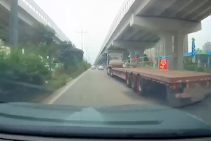 【動画】超巨大輸送の内輪差に巻き込まれてしまうドラレコ。