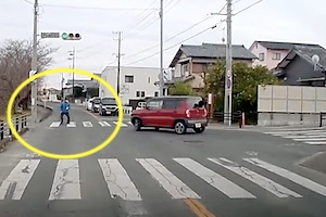 【静岡】当たり屋?T字路の横断歩道で謎の動きをするおじいが撮影されるwww