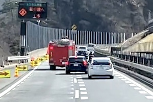 そのタイミングは無理だろう。プリウスだけじゃなく消防車の前にも出ようとしていたよね。群馬県安中市松井田町北野牧の上信越自動車道(下り)で目撃された危ないスバルのビデオです。コメントには緊急走行中と書いていますがサイレン聞こえないですよね。私のスピーカーだと音量を上げても聞こえないので単にパトロール中で回転灯だけ付けた消防車だと思います。我先運転ダメぜったい。