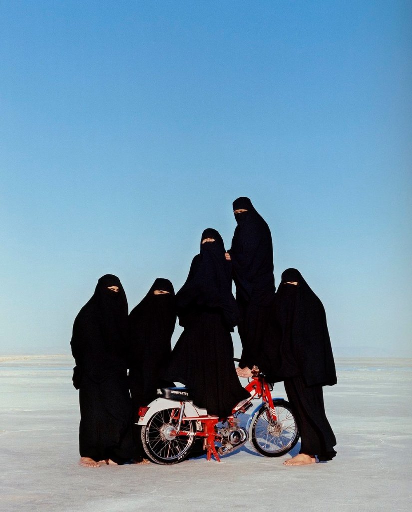 Olgaç Bozalp verliess im Alter von 19 Jahren seine Heimatstadt Konya in Anatolien, um in Zypern und Brittannien zu studieren und in Freiheit zu leben. „Ich bin erst mit 19 ausgewandert, aber ich hatte immer das Gefühl, dass hinter diesen Grenzen etwas auf mich wartet“, sagte er im Interview, und „meine Persönlichkeit passte nicht in eine Kleinstadt“. Heute arbeitet er als Fotograf und macht unter anderem ausdrucksstarke Bilder wie oben. Wir sehen die Jugendfreunde von Olgaç auf einem Salzsee unweit von Konya, wie sie in Burkas gekleidet eine Menschenpyramide auf einem Moped bilden. Das passt natürlich auch nicht in eine Kleinstadt, ob in Anatolien oder in Bayern. via guardian, pic olgaç bozalp aus seinem Fotoband leaving one for another