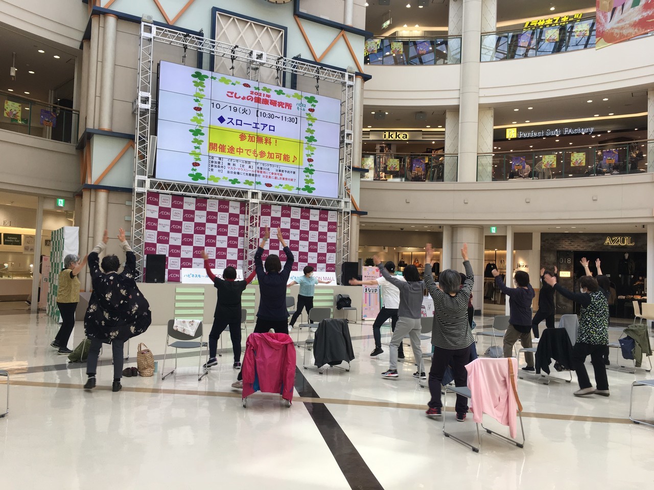 ウオーキングの仲間とお茶してから、イオンのセントラルコートで開催している「スローエアロ」に参加。少しでも元気になりたくて♪「とっても元気に見える」と言われるけど、それはウワベだけのカラ元気"(-""-)"。