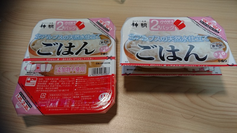 ご飯は、あまり炊きません。炊くと食べ過ぎるので、このパックのご飯を食べてます。半分で110g。