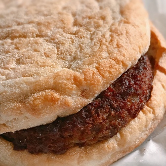 大豆ミートは極端に言えばややポソパソした食感ですが、ソーセージイングリッシュマフィンのそれと非常に似たような感じがします(^^)全然美味いし、これがもしカロリーゼロで健康にも良いというのなら、毎日でも肉の代わりとして食べれます。