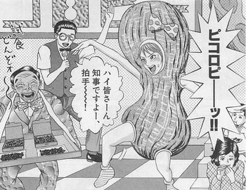 続いて、和賀県の名産ピーナッツとベルギーチョコを使った新名物「ピコロピー」のプロモーションには、知事自ら着ぐるみに入って・・・
