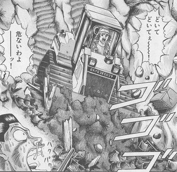 県職員達のたらい回しっぷりに業を煮やしたラン子知事は、自ら行動を起こします。なんと、自らブルドーザーで崖を崩してしまいます。さらに・・・