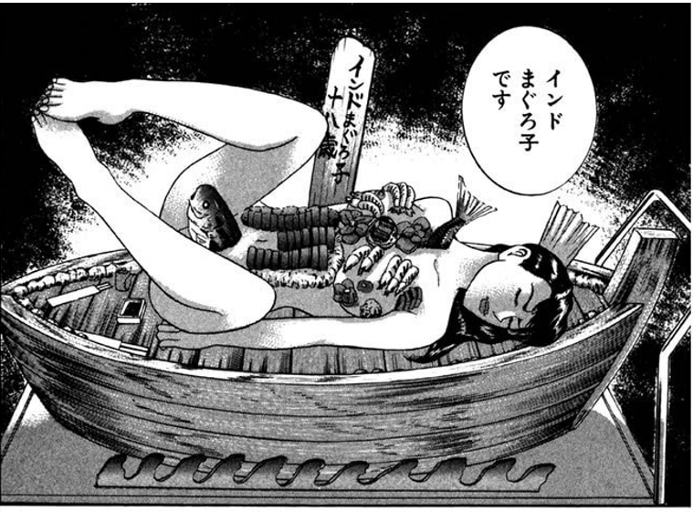 というわけで、局地的に超有名な女体盛りギャンブルマンガ『リーマンギャンブラーマウス』をご紹介しました。単行本では、ネームの段階で没になった数々の女体盛りメニューも紹介されており、ギャンブルマンガ好きには微妙ですが、女体盛りマニアなら間違いなく必見の作品と言えます。何しろ、インドまぐろ子の登場するシーンを集めた「インドまぐろ子DX」 「インドまぐろ子EX」という別冊が出ているぐらいですから、女体盛りマニアって意外とたくさんいるんでしょうね。こんなのも売ってるくらいだし……。