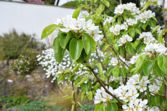 We have three pear trees – an old established one in the back garden and two young ones in the mini orchard in the front garden. All three are covered in blossom so I think/hope it’s going to be a bumper pear year this year.