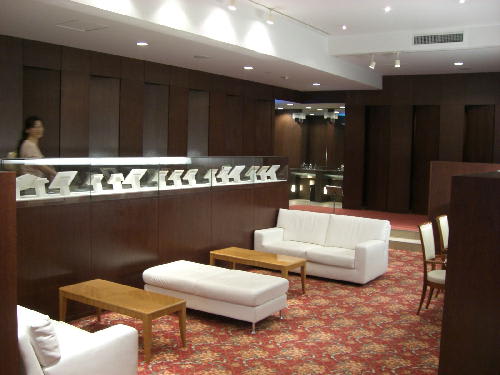 赤いじゅうたん・・・宝石店のようなショーケース・・・