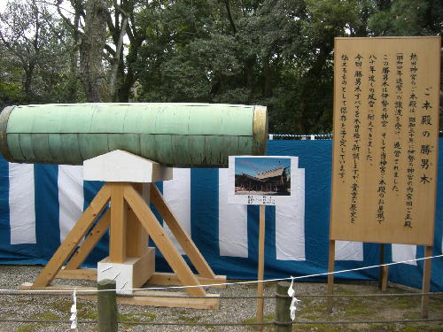 本殿の屋根にはこの500キロもある勝男木(かつおぎ)が
