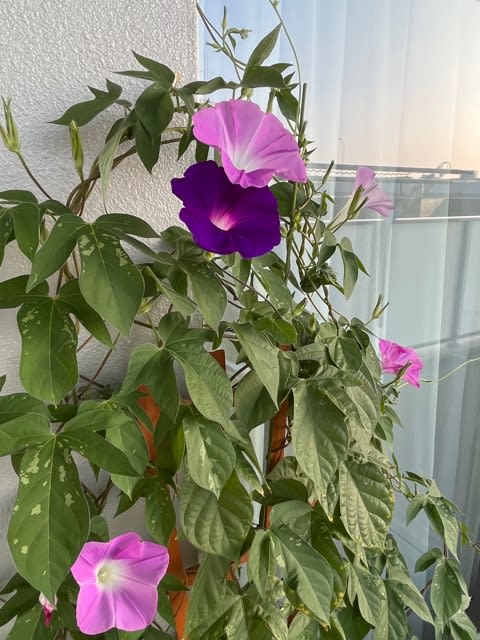 ベランダは暑いらしく8時頃には