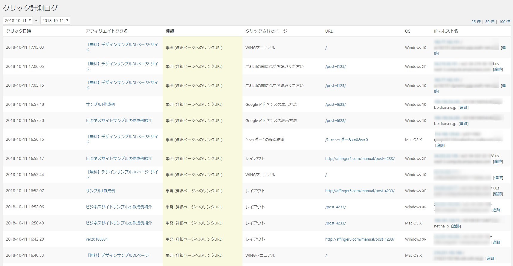 反対にPVモニターのログの「確認」をクリックするとユーザーが広告(タグ)をクリックしたかチェックできます。
