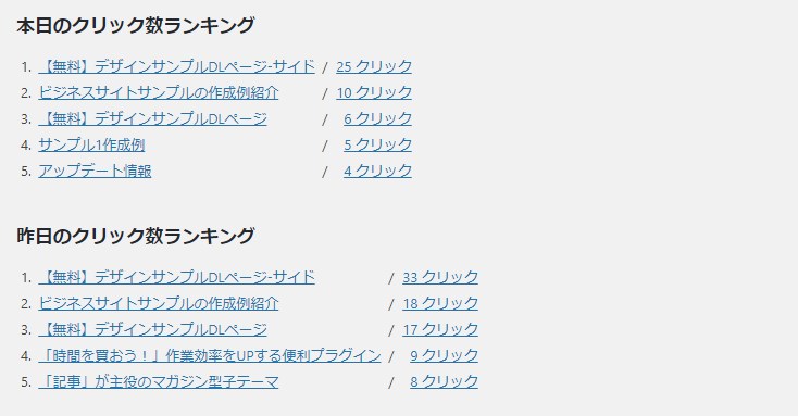 クリックされたタグの「当日」「昨日」「週間」「月間」のランキングを表示します。