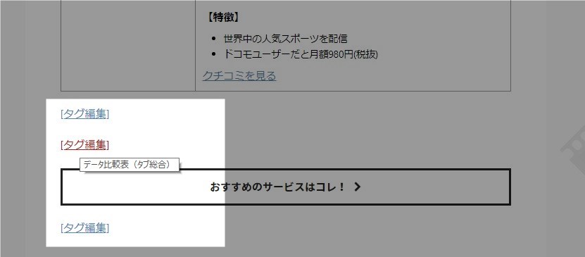 ログイン中に表示中のページにてタグの編集リンクを追加します。