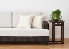 ナチュラルインテリアでは、自然素材の家具がポイント。木製や籐の素材の家具、リネンやコットンのファブリックを合わせることで、柔らかい空気に包まれた心地よい部屋が完成します。
