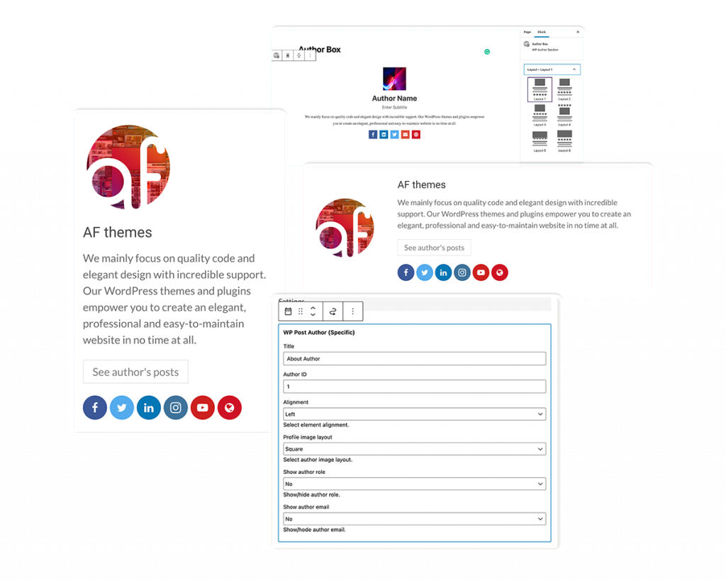 Diffrent shortcode are avilable for Post Author, Registration Form, and Log In/Out