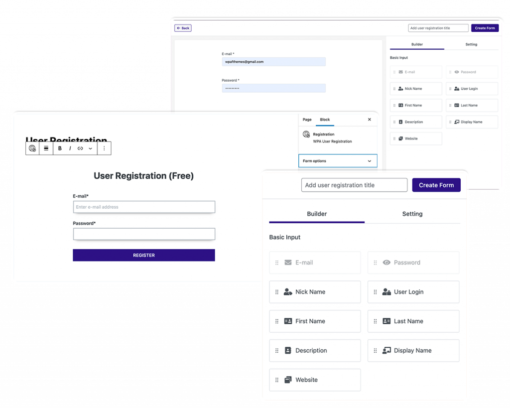The user form builder of the plugin has the feature to create and add multiple registration forms for your website. You can add/update and delete registrations from the builder admin menu, Registration Forms.