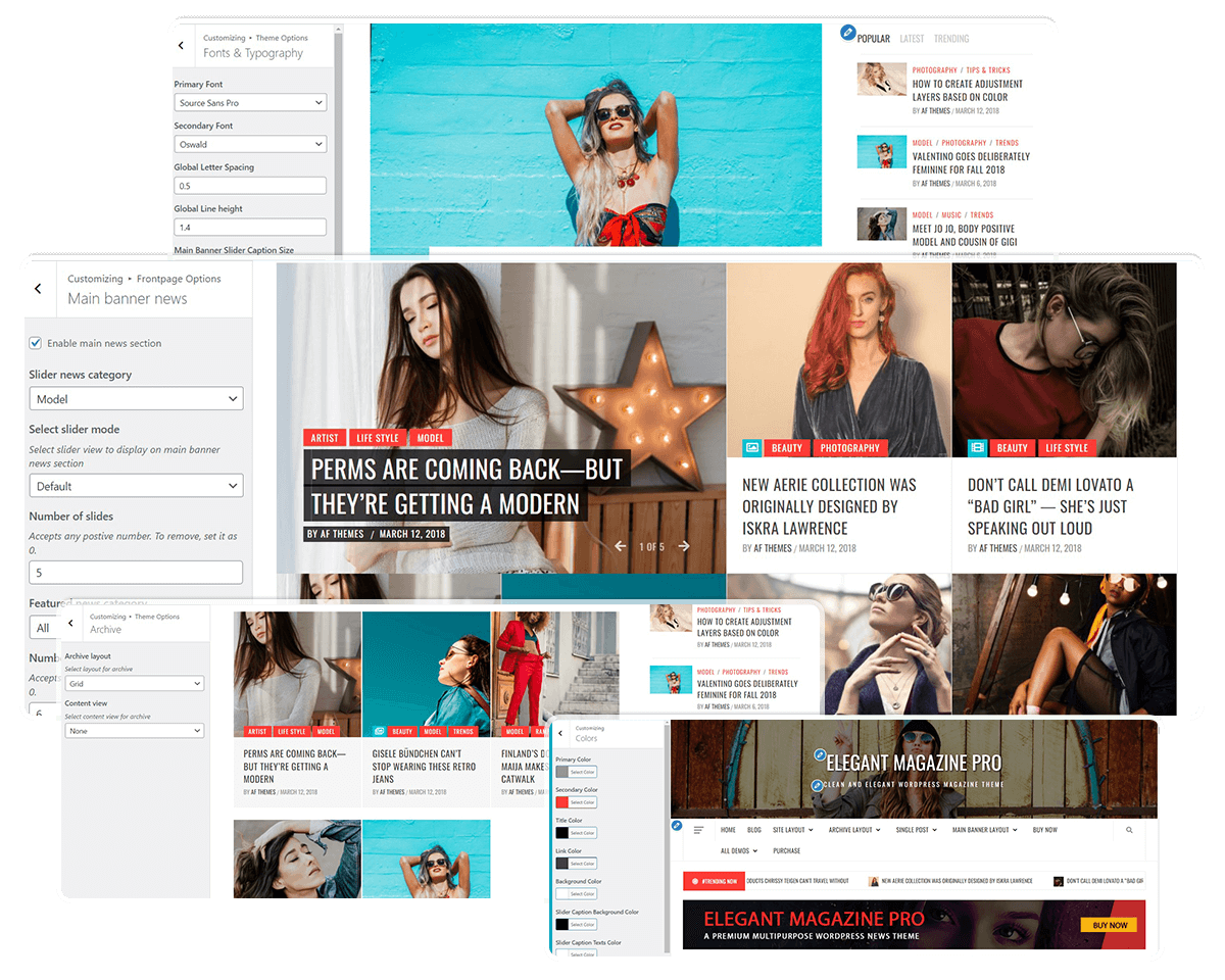 The main banner layouts and customizer options come with a variety of choices and will allow you to present your blog entries in a banner format.