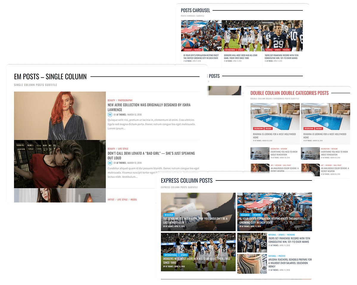The post widgets like slider, grid, list, carousel, trending, youtube video, author box, social links designs of the combo will help you present your articles in a stylish manner.