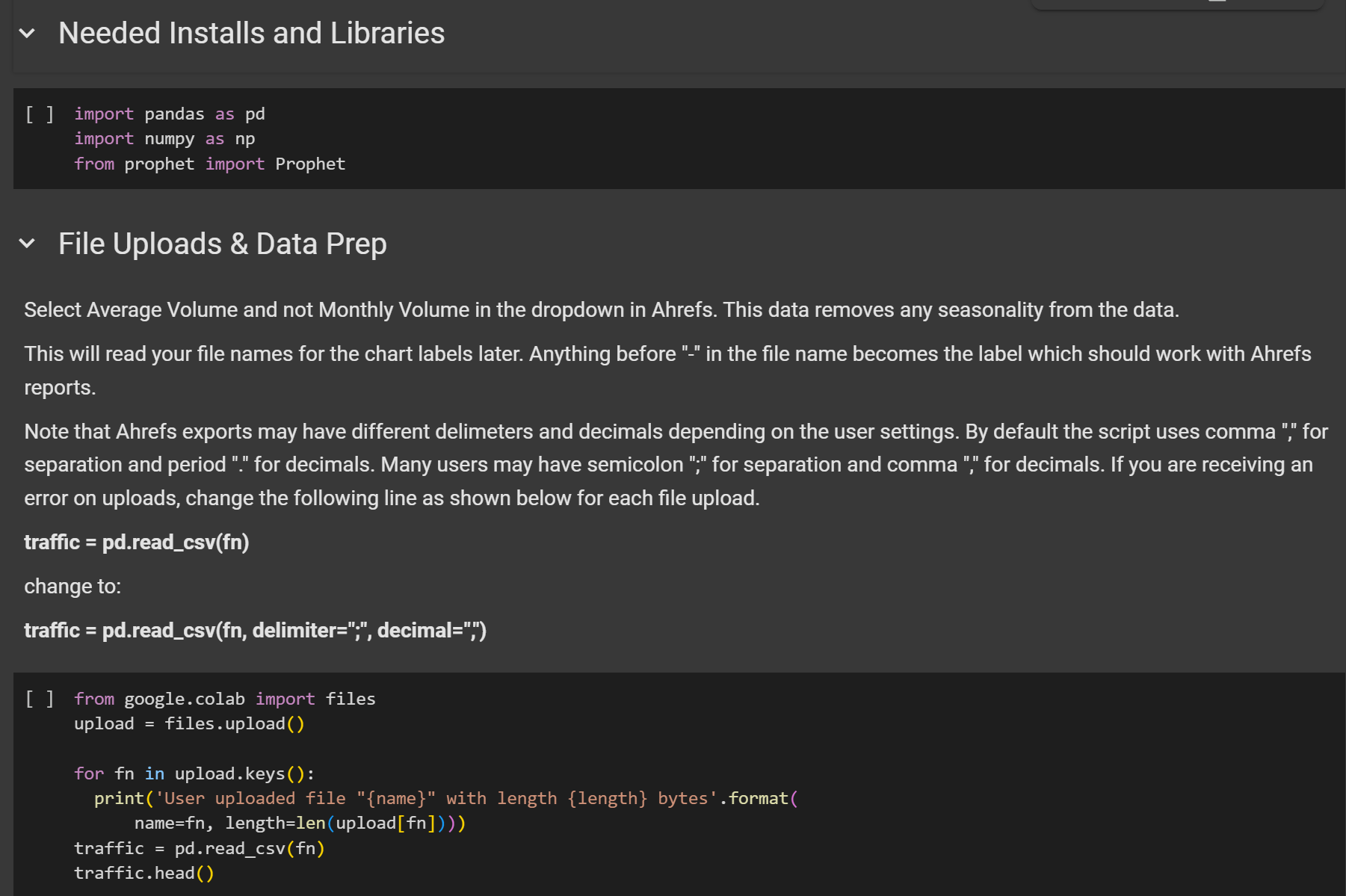 - Traffic forecasting script: Featured in our SEO Forecasting guide, this script uses historical traffic data to predict future performance. Great for setting expectations with clients or making the case for continued investment. Run the script here.