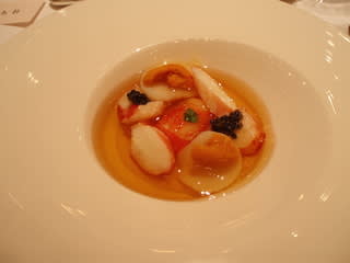 「海の幸とキャヴィアのジュレ寄せ カリフラワーのクリームと一緒に」です。