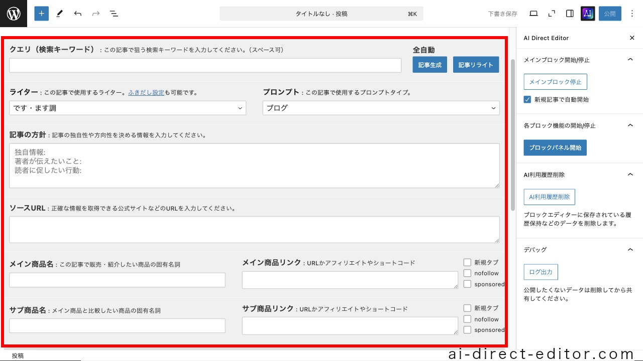WordPressプラグイン『AI Direct Editor』のメインブロックをご紹介します。