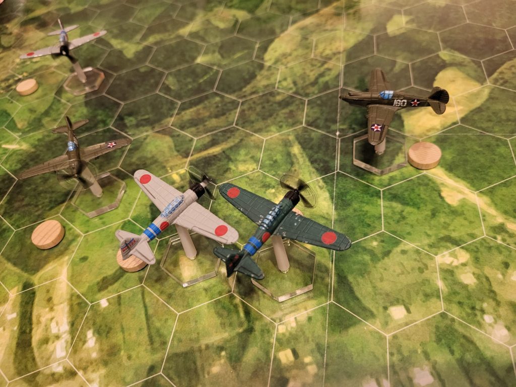 Im zweiten Spiel ging es auf die Philippinen, Szenariobuch1.10. Die angreifende Zero sollte von drei P-26 Peashootern abgefangen werden. Auch wenn die Zero am Ende gesiegt hat, war es ein sehr enges Spiel. Insgesamt sechs Mal haben die P-26 den Trefferwurf um ein Auge verpasst. Das Glück war nicht auf Seiten Villamors. In beiden Szenarien konnten die Zeros ihre tatsächliche Manövrierfähigkeit gerade bei den Tight-Turns auch im Spiel zeigen. Insbesondere bei der Veteranen-Zero war auch das Hineri-komi Manöver spielentscheidend.