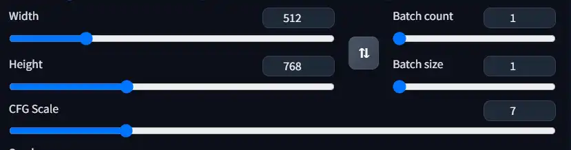 Recommendation: try not to get too far from 512x512 (unless you're using SDXL models, for which the default resolution is 1024x1024). Resolutions like 512x768 (3:4 aspect ratio) also work well.