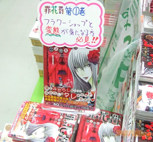 三上骨丸氏がジャンプSQに連載されている罪花罰1巻【AA】が出ていて、メロンブックス秋葉原店でPOPが付いていた。『罪花罰』は、超ド級の変態店長がいるフラワーショップを舞台にした耽美系下ネタギャグ漫画(Wikipedia)で、メロン秋葉原店のPOPでは『フラワーショップと変態が気になる方 必見!』とのこと。