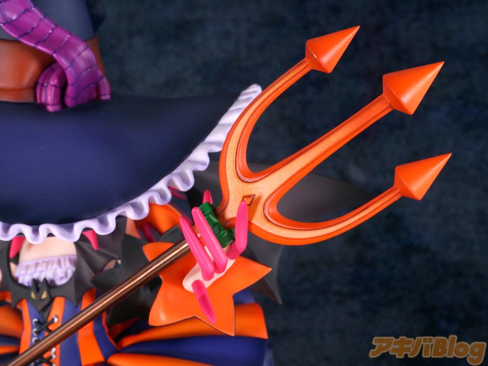 今回発売になった「キャスター/エリザベート・バートリー[ハロウィン]」フィギュアは、予約案内時の電撃ホビーWEBの紹介が『ゲーム中に登場するカードのイラストを忠実に再現。ハロウィンらしいオレンジと紫を基調とした衣装も、緻密な造形と繊細な彩色表現で美しく再現しています』とかだったもので、インサイドでは『小悪魔的な笑みはもちろんのこと、特徴的な魔女の帽子や立体感があるスカートなどの細かな作り込みも見所アリな一品』とも書いていた。