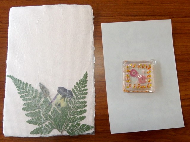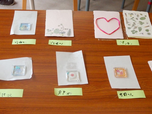森の工房やの(就労継続支援B型)さくらは班研修で押し花でキーホルダーとハガキを作る研修を行った。