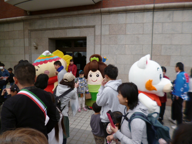 子どもたちに人気の着ぐるみキャラクター。記念撮影に引っ張りだこだった。
