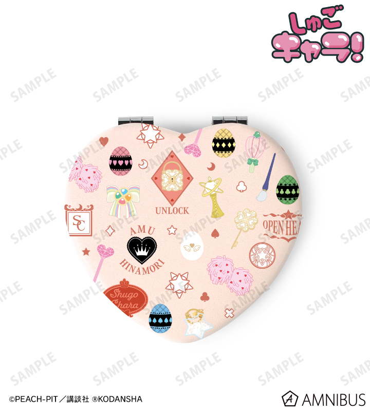 モチーフ柄 ハート型折りたたみミラー ピンク |