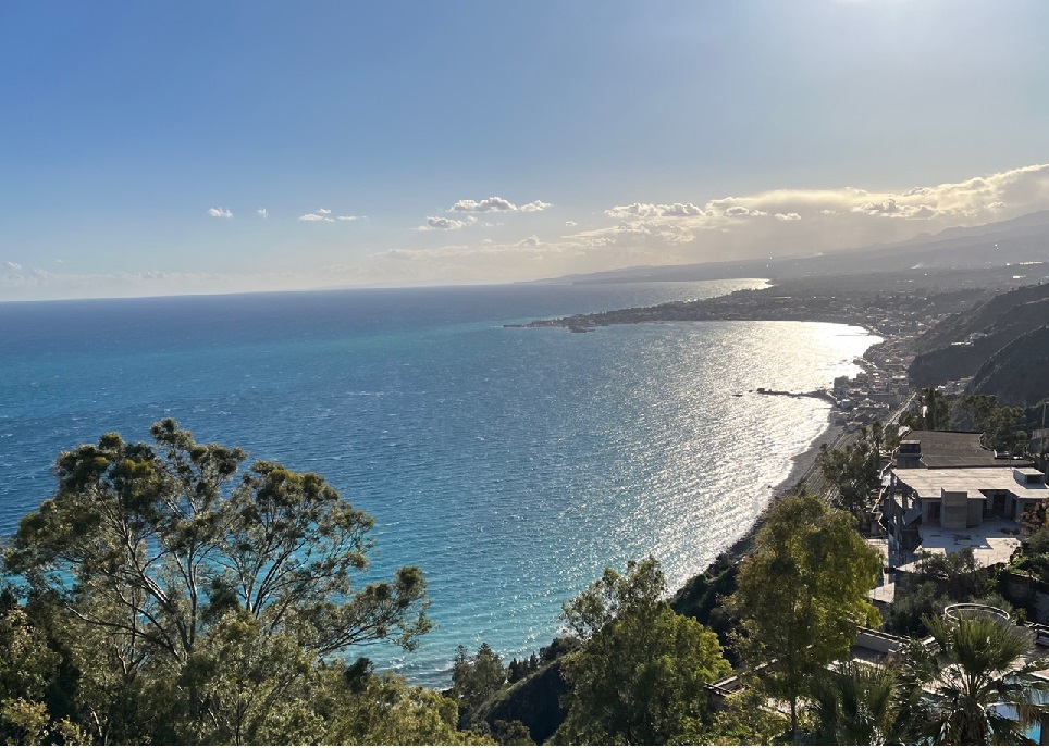 タオルミーナを後にして、帰国のために移動します。今朝は晴天になって、噴煙を上げるエトナ山が望めました。雪をいただいたエトナの山と広がる青空のコントラストは、際立つ情景を見るものに与えますね。エトナ山が、旅の終わりを噴煙を上げながら見送ってくれているようで、すっかり嬉しくなりました。