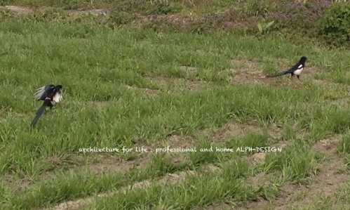 住宅敷地のお隣では、珍しいカチガラスがデートの真最中!(おまけ)