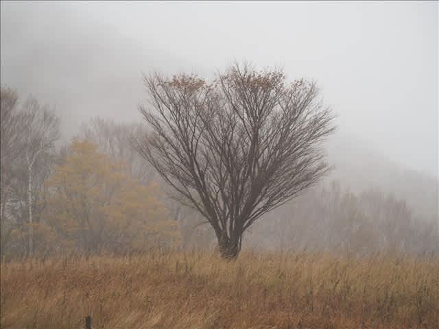 2017-11-10 晩秋の湯ノ沢峠 関東自然の花巡り 湯ノ沢峠は大菩薩峠の東側、花の多い場所として人気があります。近年鹿の害で花が減少していましたが、今は鹿よけのフエンスが張られて再び花の峠として復活しつつある場所です。鹿に新芽を食べられ、あの強い笹も一面に枯れています。