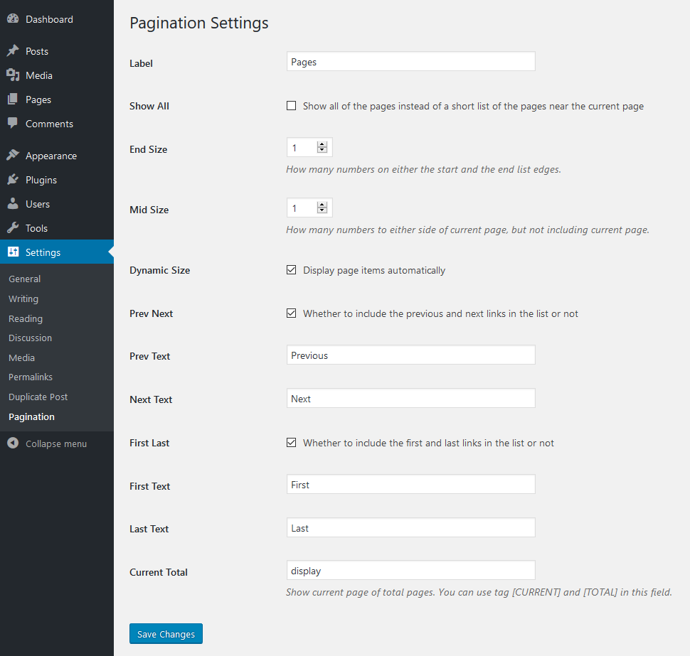 Settings Paginationmenu that appears in your admin menu.