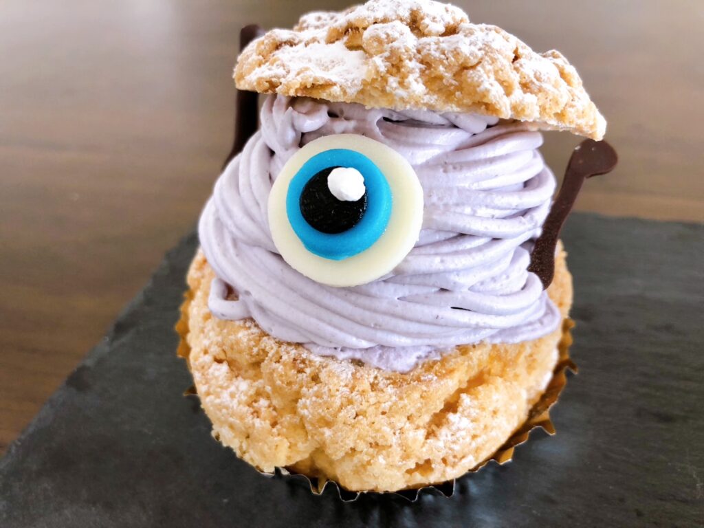 左から、モンスターシュー 500円、かぼちゃモンブラン 520円、ピーチゴースト 500円。