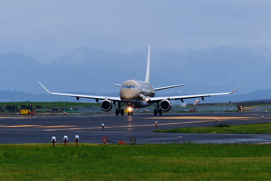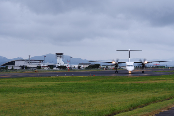 出雲空港は誘導路がないため、RW25着陸後、RW07エンドでターンしターミナルへ向かいます。