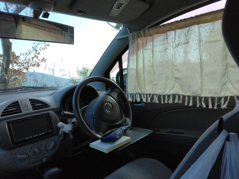 ちょうど良い日除けとなり、後部座席にはウインドーネットをして全開に。