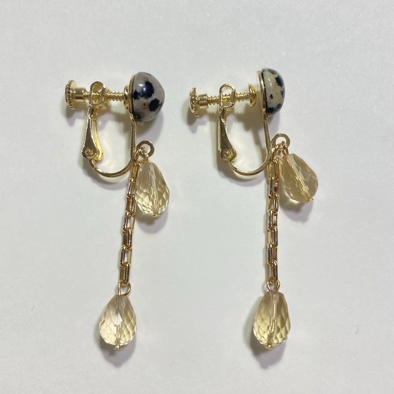 シトリンとダルメシアンジャスパーのイヤリング