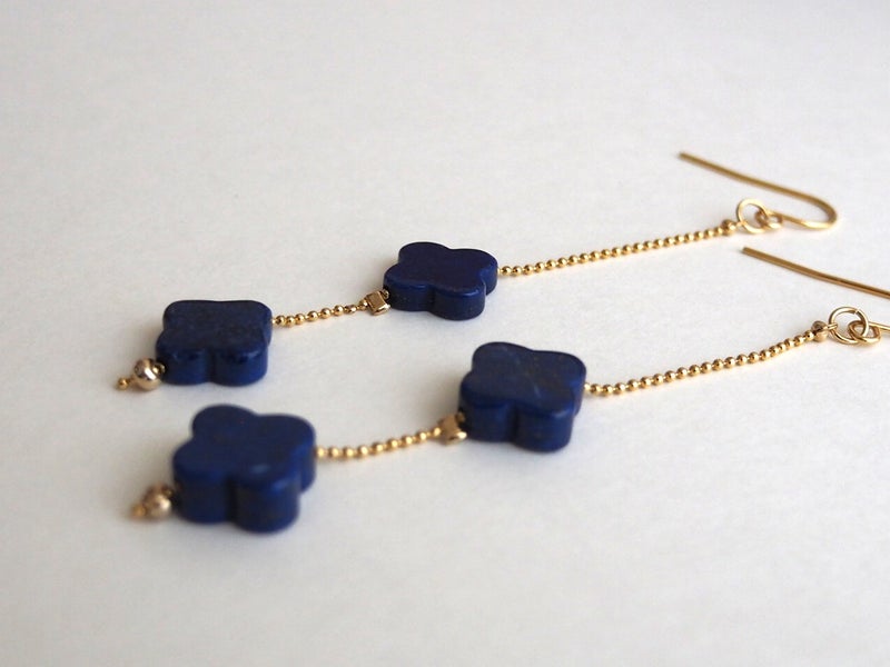 【ラピスラズリ】ふたごフラワーのピアス ピアス(フック・チェーン)