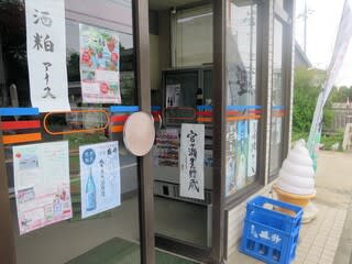 写真のバス停の脇の酒屋で、酒粕アイスを買って