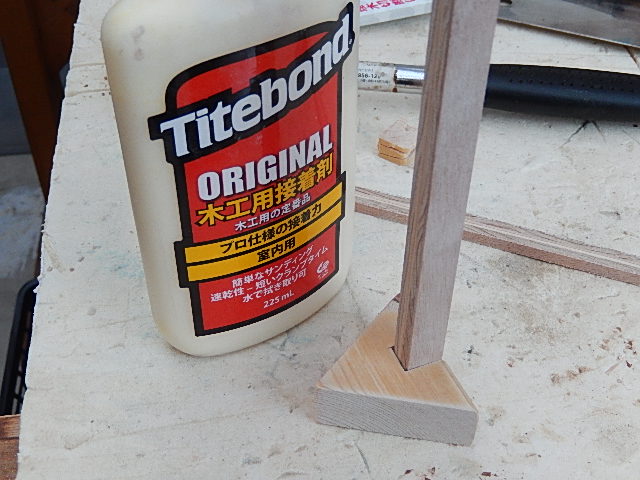 吊るす棒(上部)、こちらもボンドで貼り釘を打ちます