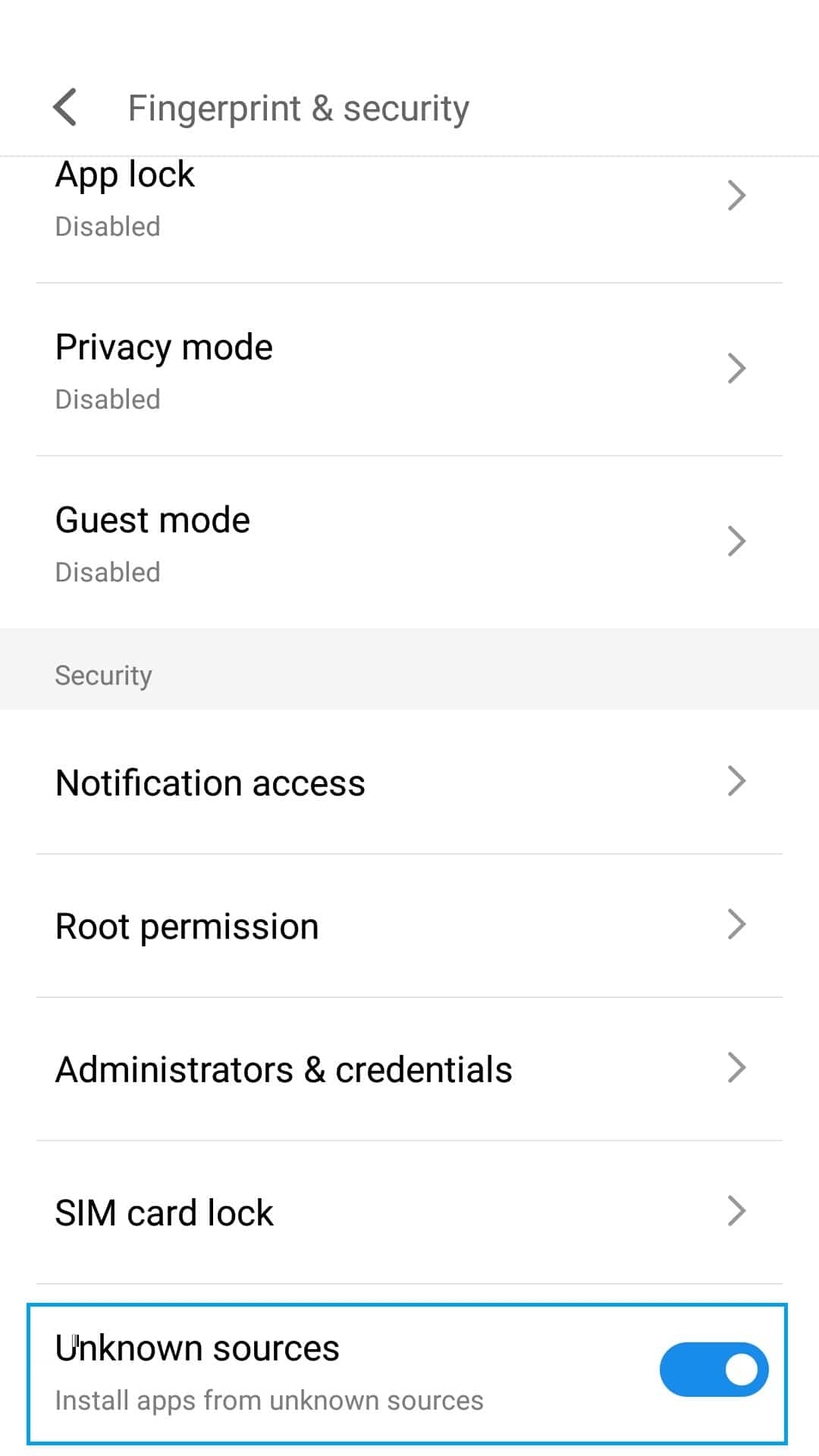 Then select "Security" and allow the installation of programs from third-party and unknown sources: