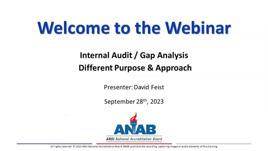 WEBINAR ANAB Webinar: Improving your Internal Auditing Skills An integral part of a successful management system is an effective audit…