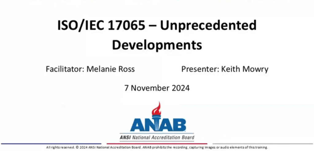 WEBINAR ISO/IEC 17065 – Unprecedented Developments for this Key ISO CASCO Standard In April, the ANSI National Accreditation Board (ANAB) provided a webinar discussing…