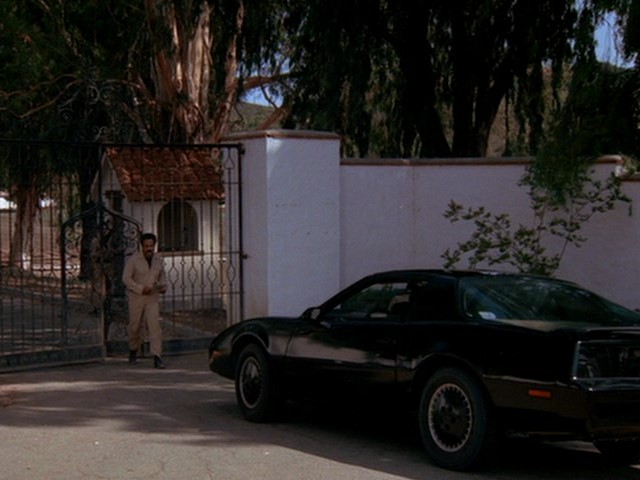 Later, KITT makes his way down the road and reaches the compound gate. It is guarded. KITT uses his jammer to destroy an innocent coffeepot inside the gate house, starting a fire that draws the guard's attention.