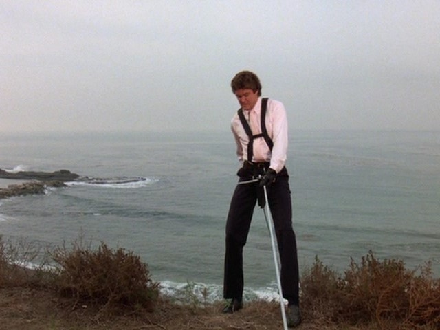 Michael is dazed, and while he pulls himself together the lackeys make it to the boat. He finally gets into KITT and attempts to chase them, but soon runs into an outcropping of the cliff that prevents KITT from advancing. After beating on KITT's steering wheel in frustration (don't hit him, it's not KITT's fault!) Michael goes back to retrieve Micki's purse and then they head back to the beach house. It is not revealed how they got KITT back up to the top of that cliff.